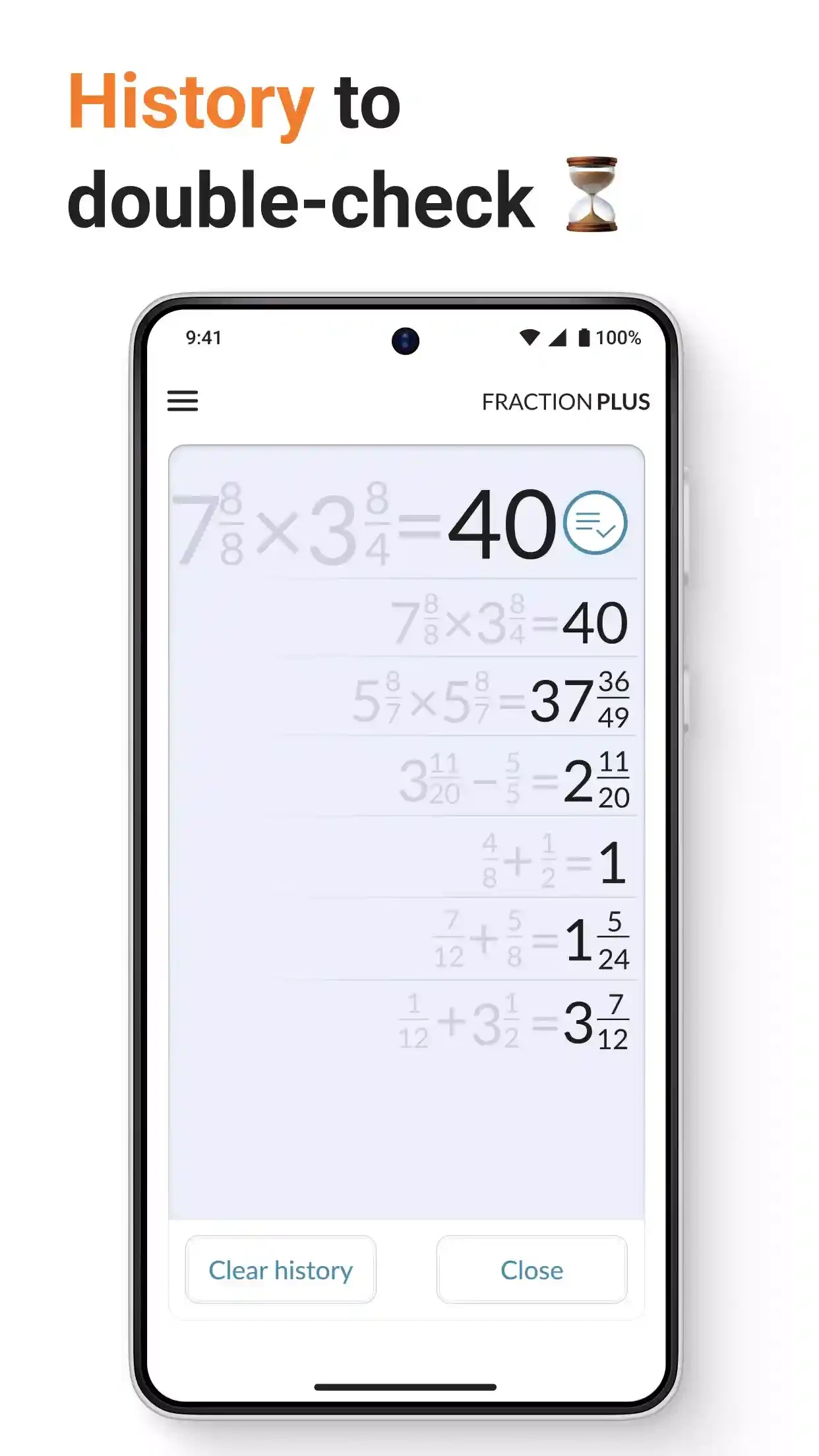 O aplicativo também permite comparar duas frações para descobrir qual é a maior. Você pode salvar o histórico de cálculos para usá-lo em outros fins e consultá-lo quando quiser. Ele também ajuda a identificar suas dificuldades e corrigi-las com mais precisão. O recurso de copiar e colar agiliza o trabalho e permite lidar com problemas complexos ou com várias etapas.